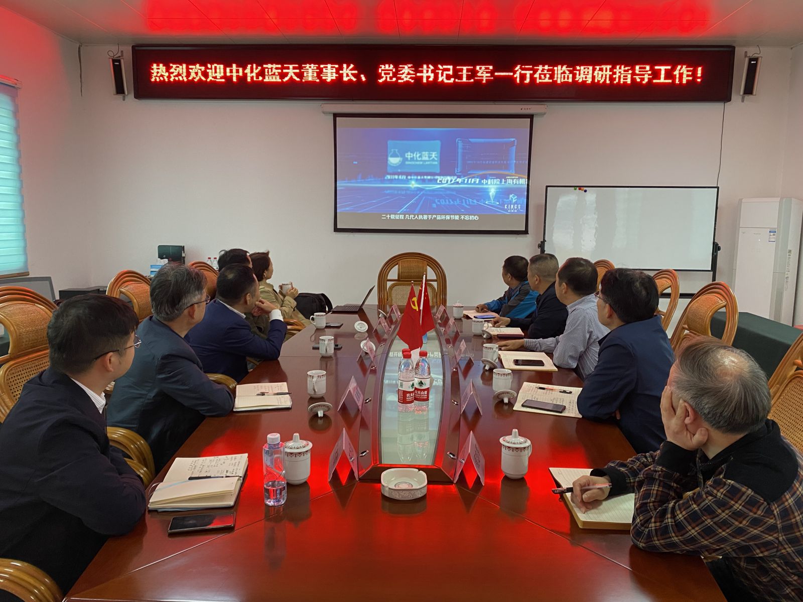 2021年11月3日,公司股東中化藍天董事長兼黨委書記王軍、副總經理吳康慧等一行5人蒞臨我司調研指導工作。金石氟業(yè)董事長總經理陳建華,金石礦業(yè)總經理李仁輝及中化藍天派駐領導洪惠能、程志軍等陪同參加。